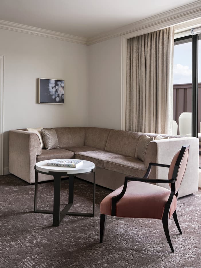 Aprecie as vistas deslumbrantes da Catedral Nacional, do Rio Potomac e dos telhados da histórica Georgetown de seu espaçoso terraço. Aproveite o sol para desfrutar de um delicioso piquenique ou saboreie um coquetel ao cair da tarde. Com áreas de estar, jantar e dormir bem definidas, esta suíte do quinto andar é ideal para refúgios românticos a dois ou férias em família.