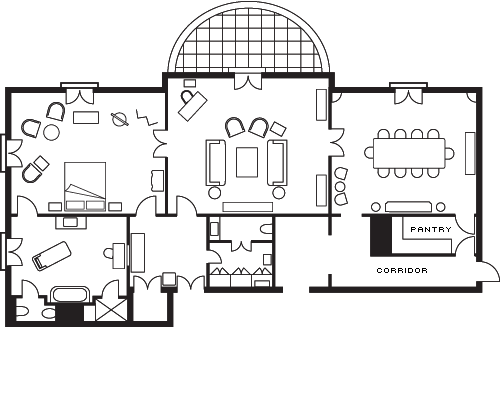 A space for hostingDesigned to welcome 10 guests, the dining room of the Presidential Suite features original Slavonian oak floors, stylish furniture and silverware pieces. A crystal chandelier adds a touch of distinction. Conveniently located next to the suite’s kitchen and living room, this space is both grand and inviting, ideal for hosting a meal prepared by the Hotel’s Executive Chef, Juan Gaffuri.