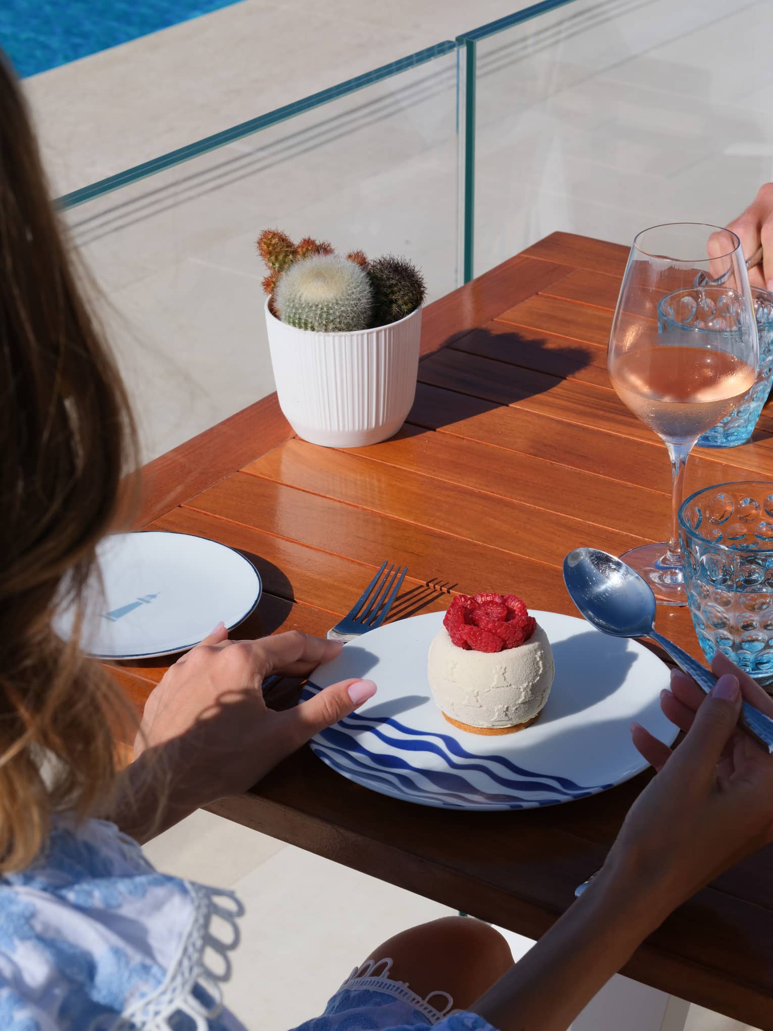 With the sparkling waters of the infinity pool and sea as a backdrop, our open-air poolside restaurant invites all-day poolside relaxation, with Provençal salads and grilled fish accompanied by a local rosé wine.