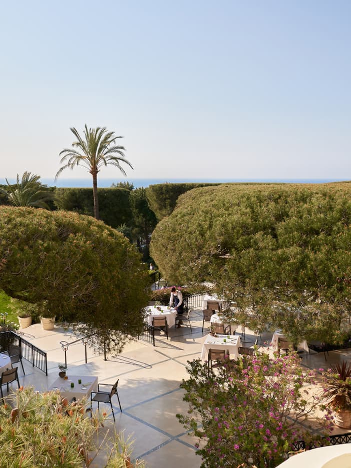 La Véranda offers a sense of informality with an atmosphere and menu reminiscent of a chic French Riviera bistro, combining influences from Italy and the Mediterranean Sea and inspiration from the coastline of Cap-Ferrat.