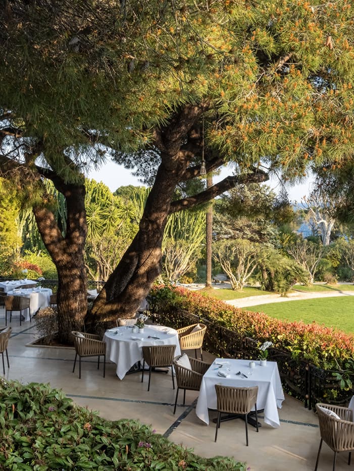 La Véranda offers a sense of informality with an atmosphere and menu reminiscent of a chic French Riviera bistro, combining influences from Italy and the Mediterranean Sea and inspiration from the coastline of Cap-Ferrat.