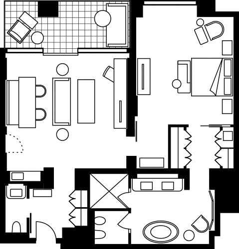 With a large living space, a separate master bedroom and a private balcony, these elegant suites provide all the comforts of home during your visit to the White City.