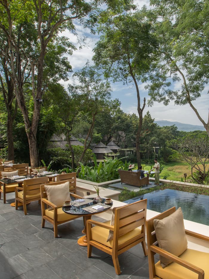 Designed by renowned architect and landscaper Bill Bensley, our restaurant and cooking studio is where our Chiang Mai cooking classes take centre stage. Housed in a charming Thai teak house, this culinary destination celebrates traditional Lanna elegance. Join the cooking class or experience the intimate Chef’s Table in the open-air pavilion overlooking a waterfall with sweeping tropical views.