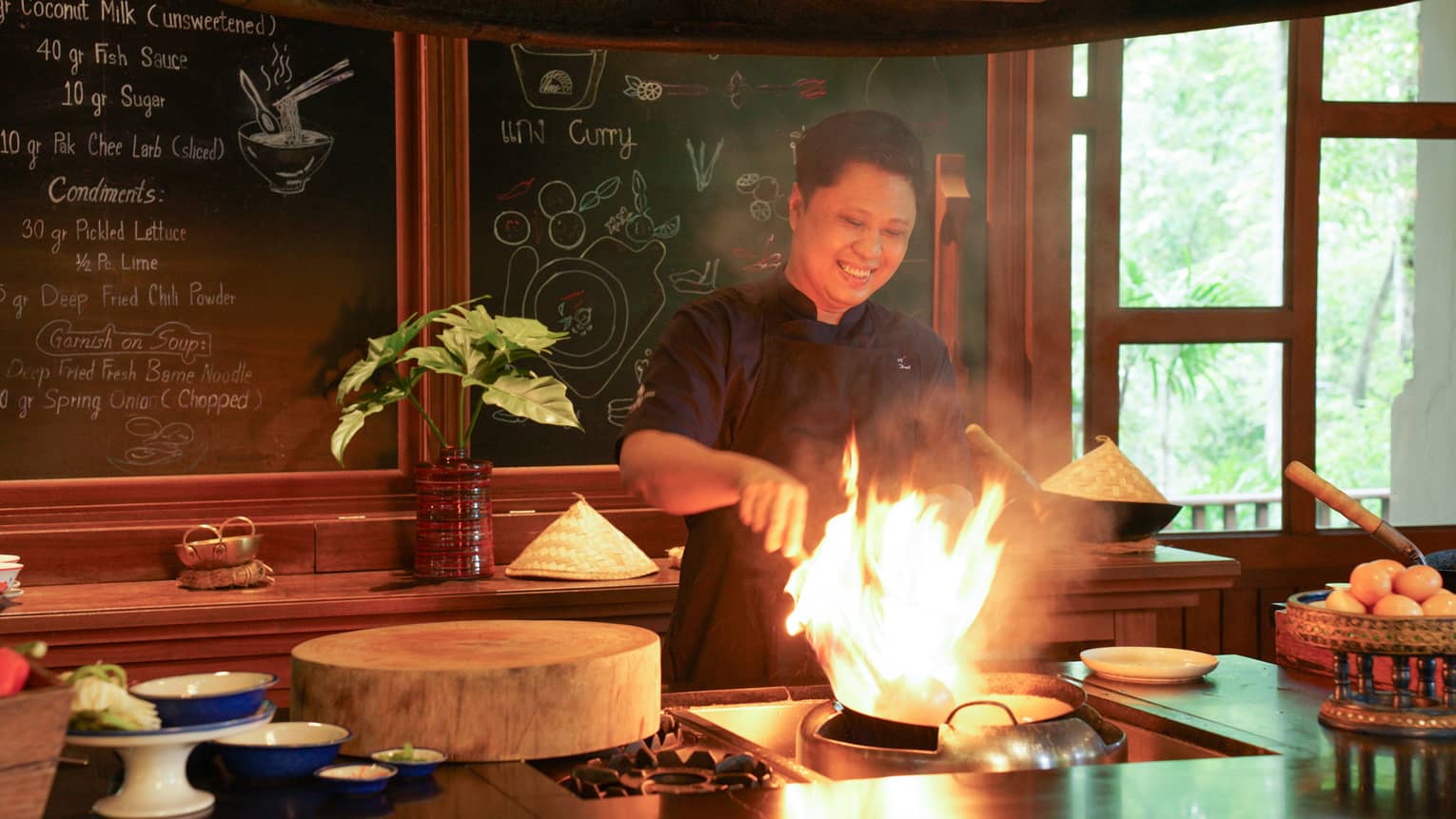 Experience the art of Thai cooking as our chefs expertly prepare dishes over an open flame.