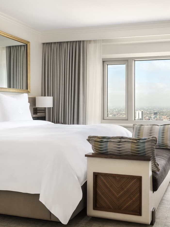 After a day exploring the city, retire to these comfy yet contemporary suites that boast relaxing hues of gray, ivory and sage.