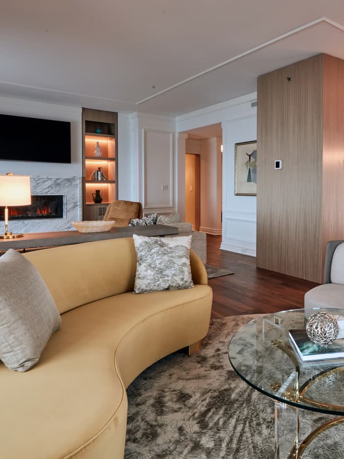 Designed by Rottet Studio with the intention to adapt to any guest, our Presidential Suite is a truly remarkable home away from home for families or couples seeking extra space. Perched on the 46th floor, the newly reimagined suite boasts a flexible room that is completely customizable. From a private fitness room to play area, this contemporary space can be configured to suit your needs and interests.