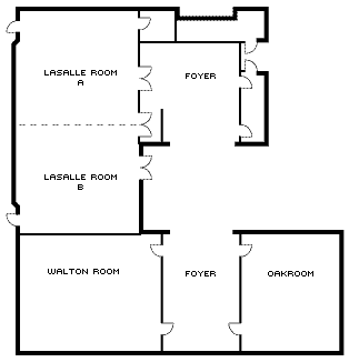 A unique oval shape, the Oak Room offers a permanent conference table for easy set-up of an executive board meeting.