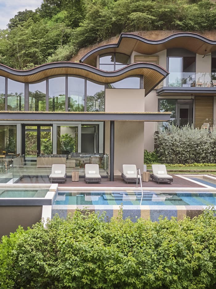 Privacy and seclusion reign at our largest estate home, complete with a swimming pool and an expansive outdoor living area perfect for entertaining or lounging.