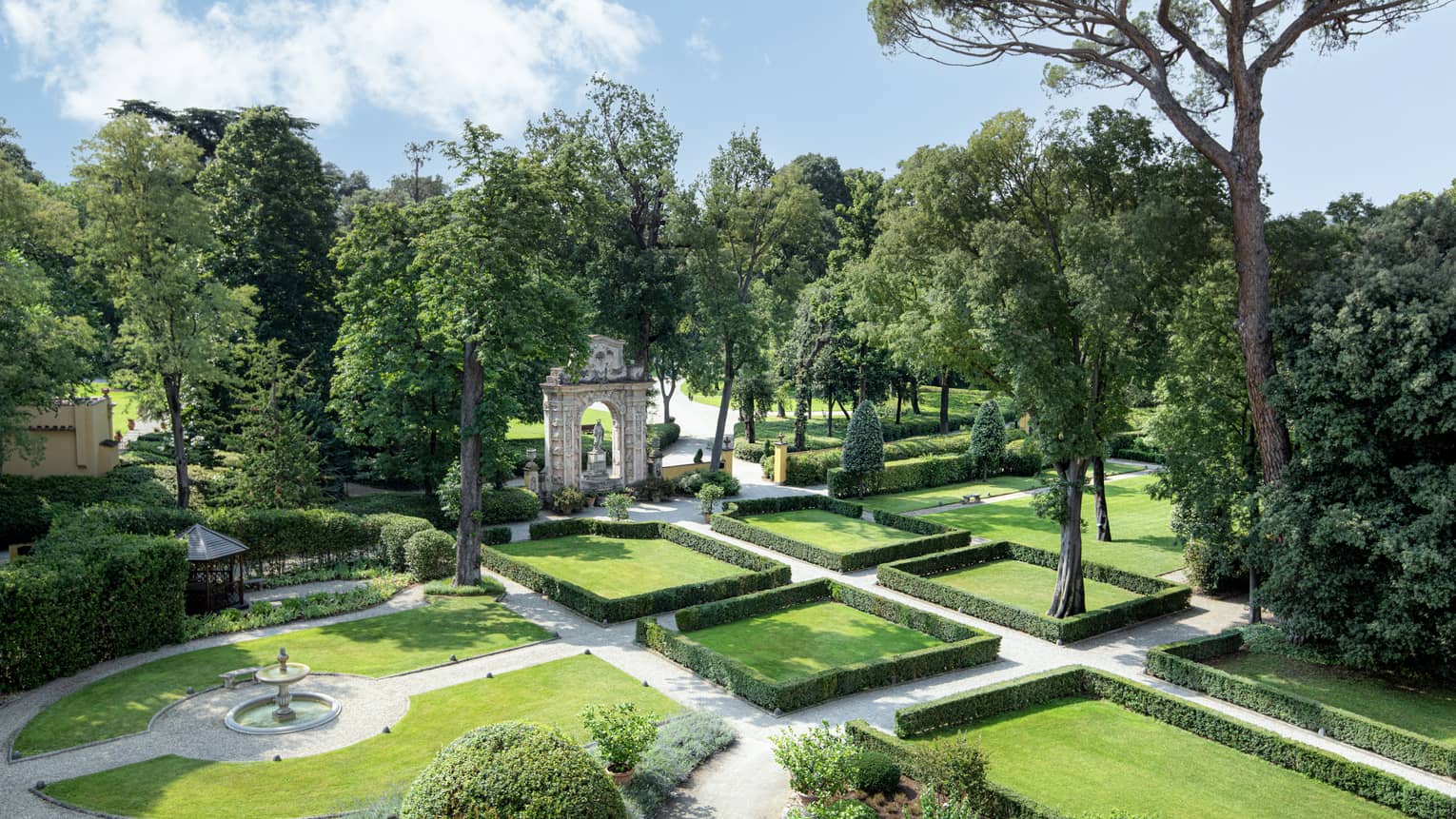 Der Blick auf den Giardino del Borgo wetteifert mit den freskenverzierten Gewölbedecken in unserer Executive-Suite