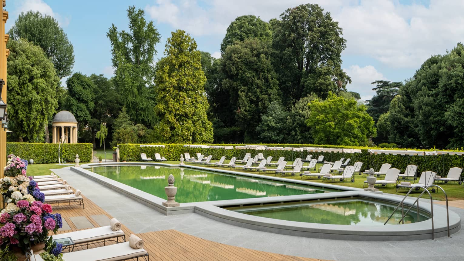 Royal-Suite (della Gherardesca)Angefangen bei der gewölbten Decke über den originalen Capodimonte-Keramikboden im Majolika-Stil und den Fresken aus dem 17. Jahrhundert bis hin zum Parkblick, wohin das Auge nur reicht: Diese opulente Suite ist eine nie endende Augenweide.