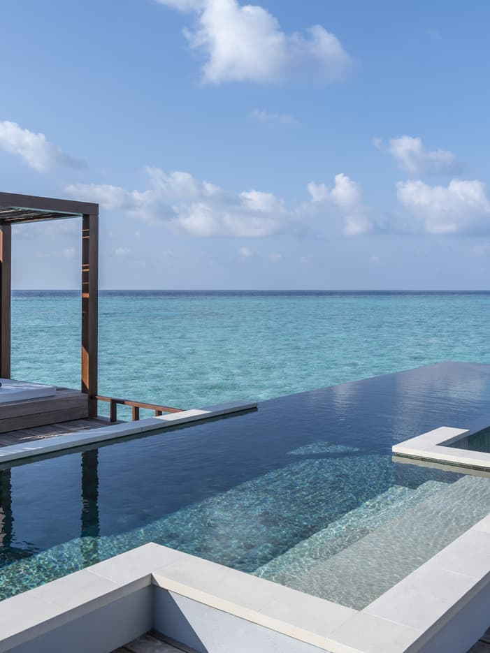 Bewundern Sie atemberaubende Sonnenuntergänge, während Sie in Ihren Überwassernetzen, Ihrem privaten Pool oder hoch oben in Ihrem Loft mit Meerblick faulenzen. Mit einem geräumigen Schlafzimmer, einem Wohnbereich, einem separaten Arbeitszimmer mit Schlafsofa und Stufen, die direkt ins Meer führen, lassen diese nach Westen ausgerichteten Villen Sie in die weitläufige Ruhe des Lagunenlebens eintauchen.