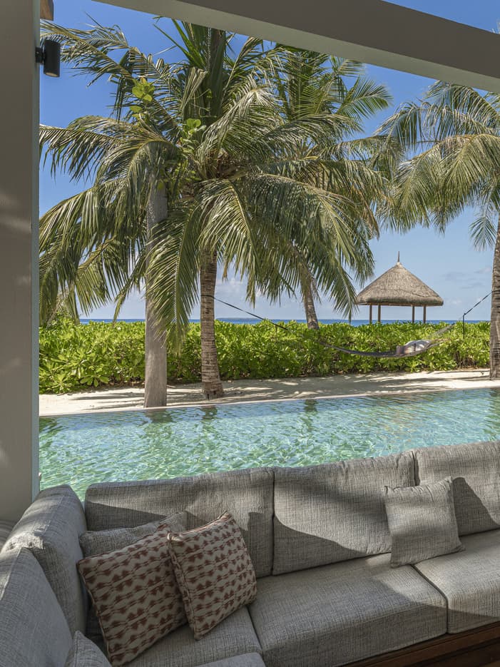 In absoluter Privatsphäre und doch nur wenige Schritte vom belebten Blu Beach Club entfernt, ist diese Gruppe von drei Pavillons um einen 20 Meter langen Pool herum angesiedelt, auf dessen weitläufiger Open-Air-Lounge Sie luxuriöse Annehmlichkeiten wie Tagesbetten und einen „schwimmenden“ Esstisch finden. Ein eigener weißer Sandstrand gehört ebenfalls dazu.