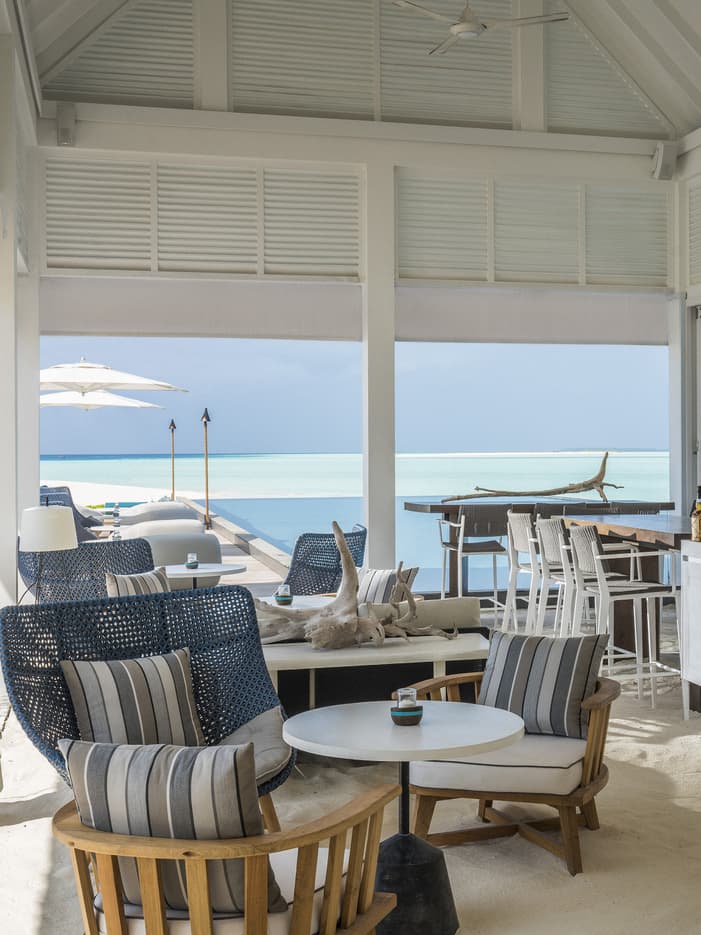 Details Details- SeabarEin kurzer Strandspaziergang führt Sie zu einem der entspanntesten Bar-Decks auf den Malediven: Willkommen in der Seabar, wo Sie zu Live-DJ-Klängen auf bequemen Kissen an Frozen Margaritas nippen und dazu Tapas essen. Währenddessen tummeln sich im türkisfarbenen Wasser unter Ihnen Zitronenhaie und Rifffische.