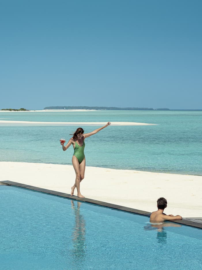 PoolsEinzigartig auf den Malediven, verfügt unser Pool über olympische Maße. Für ein erfrischendes Bad lädt unser Infinity-Pool in eine Bar direkt im Wasser und auf ein ausladendes Sonnendeck ein. Außerdem erwartet Sie ein Meerwasserbecken, das auf dem Wasser zu schweben scheint, und unser Blu Sunset Pool.