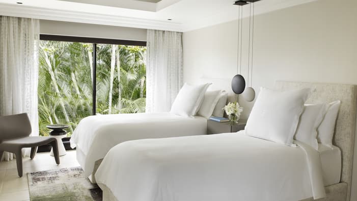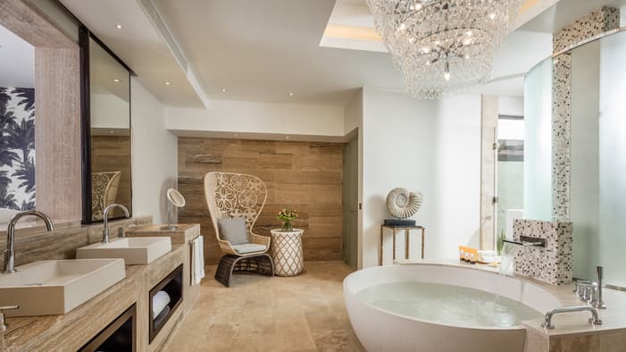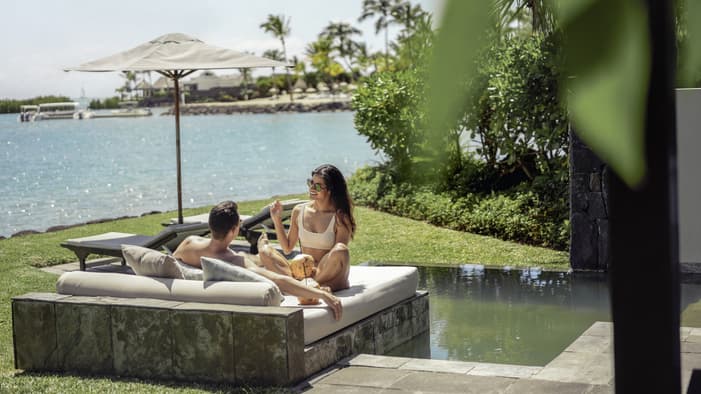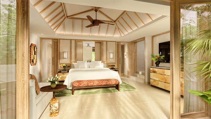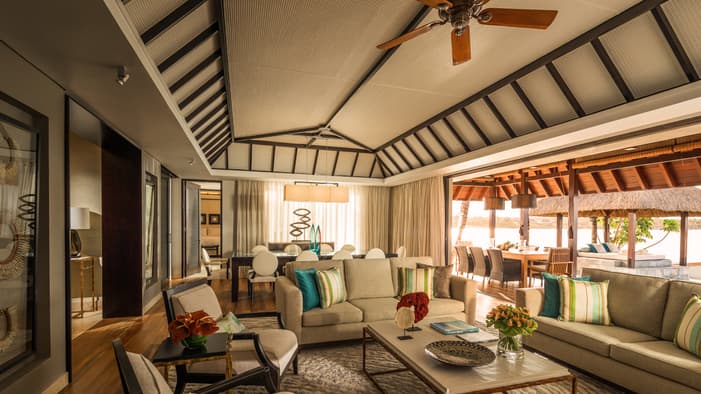 Unsere luxuriöse Suite mit drei Schlafzimmern liegt an der Spitze der Privatinsel des Resorts, direkt am Bambou Beach. Highlights wie zwei private Infinity-Pools und ein Whirlpool mit Blick auf die Lagune schaffen das perfekte Ambiente, um gemeinsam mit Ihrer Familie oder Freunden den Urlaub Ihres Lebens verbringen.