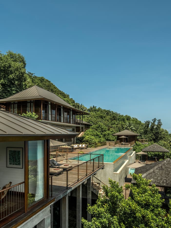 1.900–2.500 m2, einschließlich großzügigem Außenwohnbereich mit privatem Infinity-Pool. Im höher gelegenen Bereich des Resorts