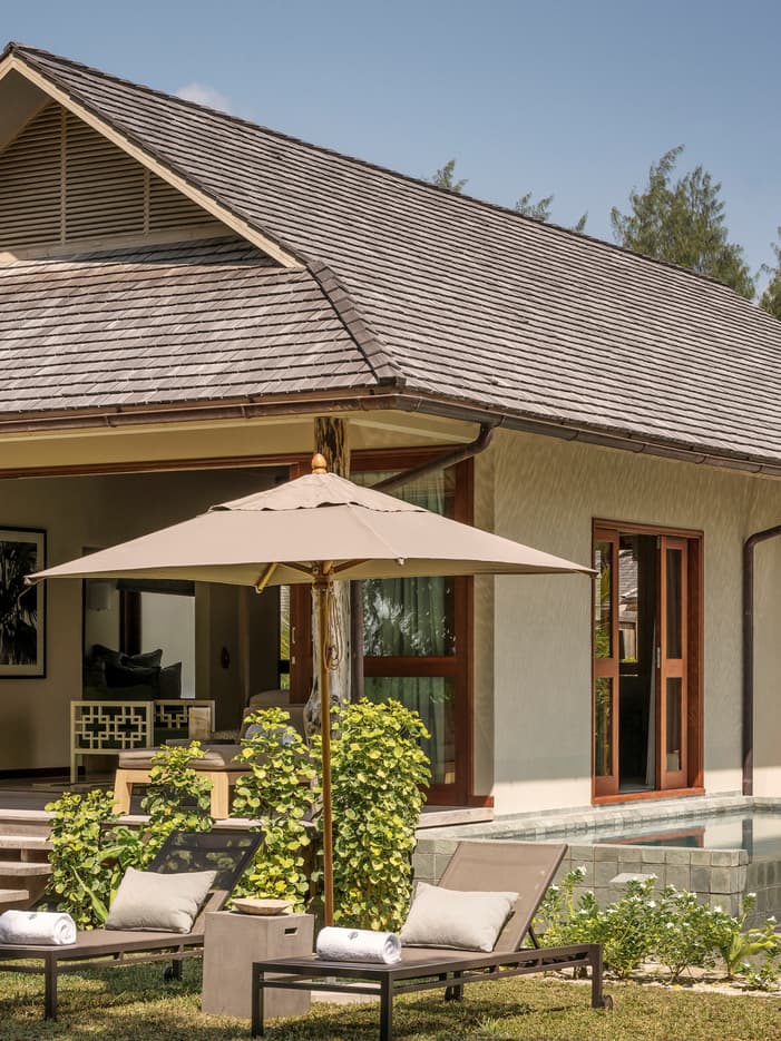 - Terrasse auf oberer Etage (nur in der Villa am Wasser mit Blick auf den Sonnenuntergang und der Desroches-Suite mit zwei Schlafzimmern)