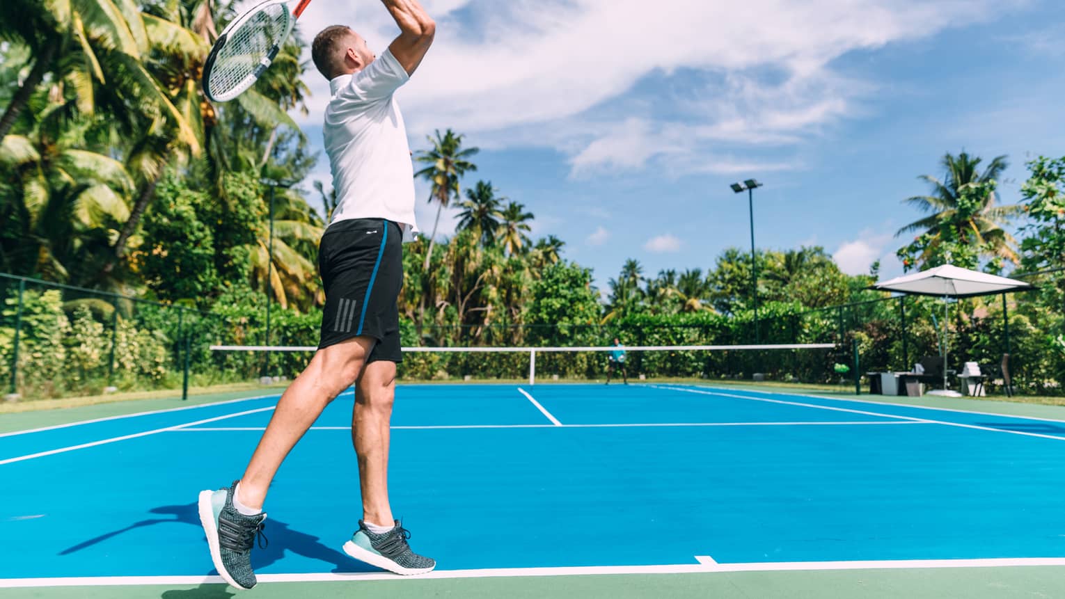 Spielen Sie ein Match auf unserem mit Flutlicht beleuchteten Tennisplatz.
