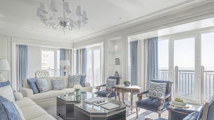 With dramatic views of the Doha skyline, these spacious guest rooms add to your relaxation with a comfortable sitting area. Most also include a step-out balcony.
