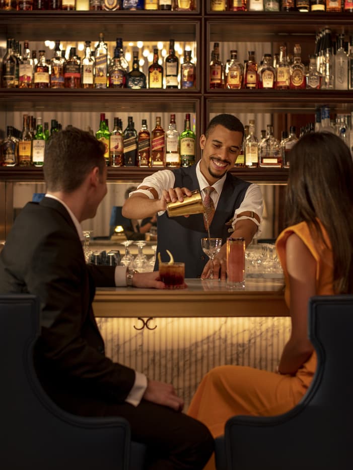 Sink into a plush armchair in this secret hideaway, where a solid marble bar, inky blues and antique mirrors offer a nostalgic yet contemporary setting for evening Martinis and cosy conversation. Enjoy our exclusive Cigar Bar to accompany handcrafted cocktails and elevated bar bites.
