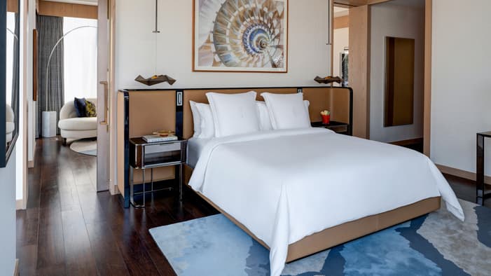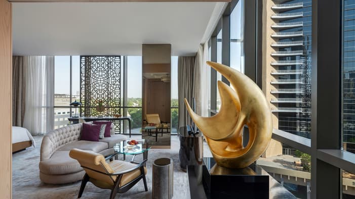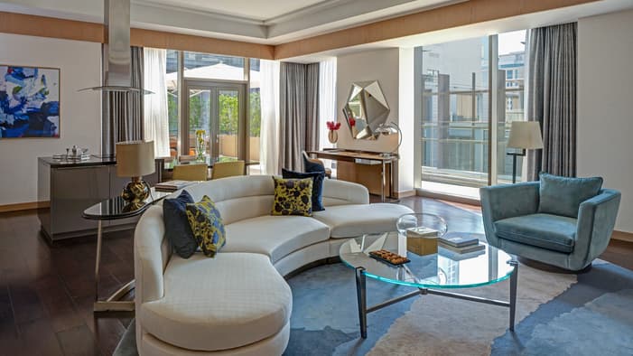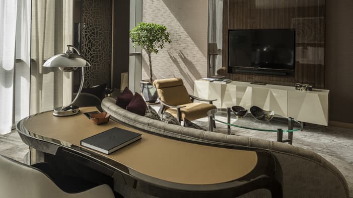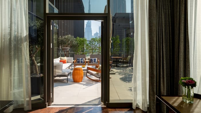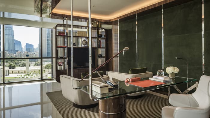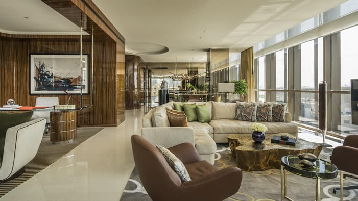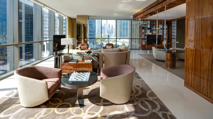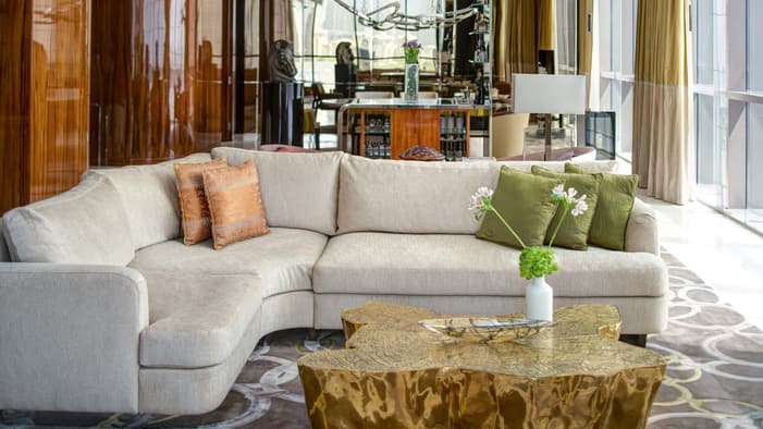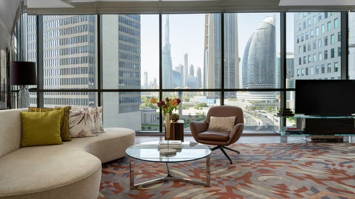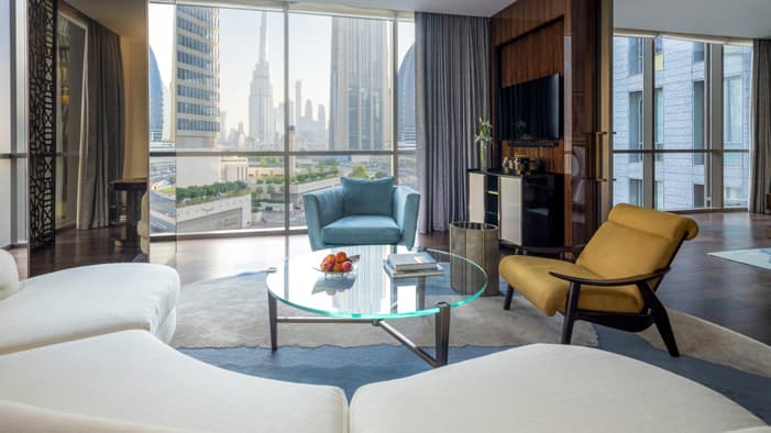 Our premium specialty suites are perfect for travelling with family and friends or extended stays, with separate living and sleeping areas and the extra space you need to entertain or unwind. Designed with exclusivity and privacy in mind, these suites offer the perfect retreat for travelling alone or in a big group alike. With separate living and sleeping areas, you will find all the space you need to entertain or relax in luxurious comfort. And let's not forget the stunning views of the iconic Burj Khalifa, adding an extra touch of magic to your experience.