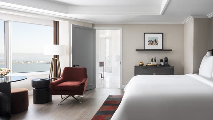 Experience unparalleled luxury at Four Seasons Hotel San Francisco at Embarcadero. Our Bay Area suites and hotel rooms in San Francisco offer bay views, combining modern elegance with top-tier amenities. Enjoy spacious Bay view suites designed for ultimate comfort and convenience. Ideal for business or leisure, our hotel suites in San Francisco provide a sophisticated urban retreat with views of the city and beyond.