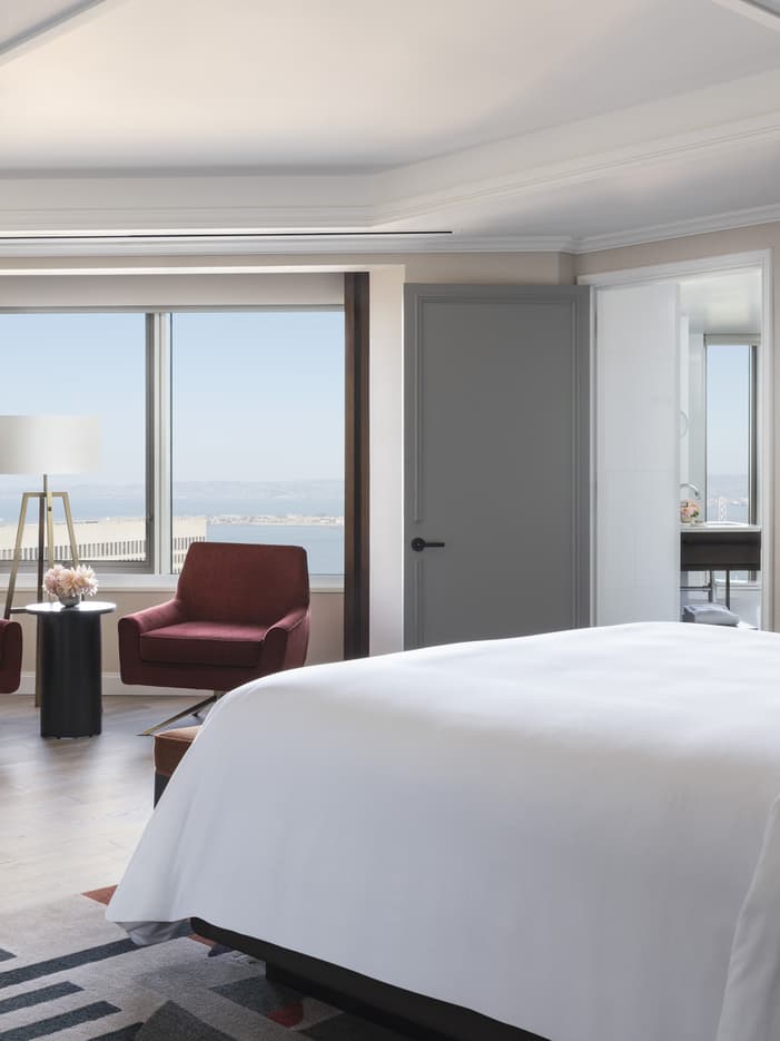 Like a chic San Francisco apartment, this suite features a full living room, private bedroom and two full bathrooms. Views stretch from the Golden Gate Bridge to the Bay Bridge, including the city’s most famous landmarks.