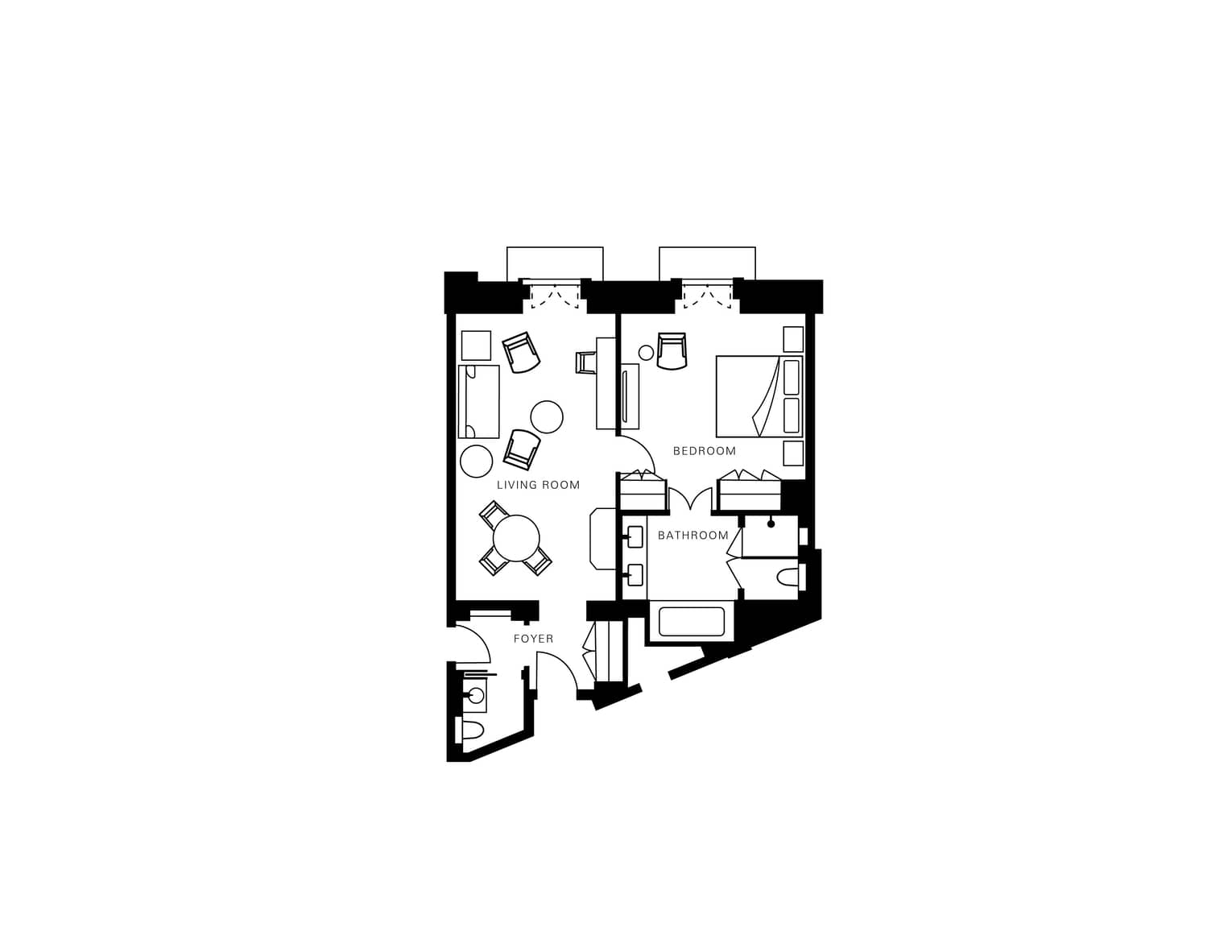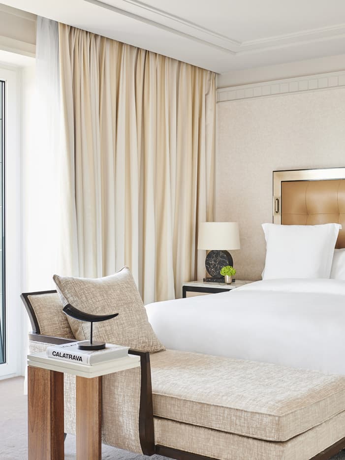 Con un estilo residencial clásico, esta suite cuenta con una amplia área de estar y comedor, con un práctico tocador, ideal para recibir a familiares, amigos o compañeros de trabajo. Una sólida puerta crea un santuario privado para el dormitorio y el lujoso baño privado.