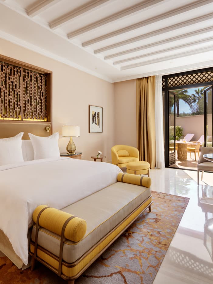 Los tonos del desierto y los techos abovedados brindan a estas habitaciones un atractivo de amplitud, realzado por el fácil acceso a la piscina para nadar por la mañana temprano.