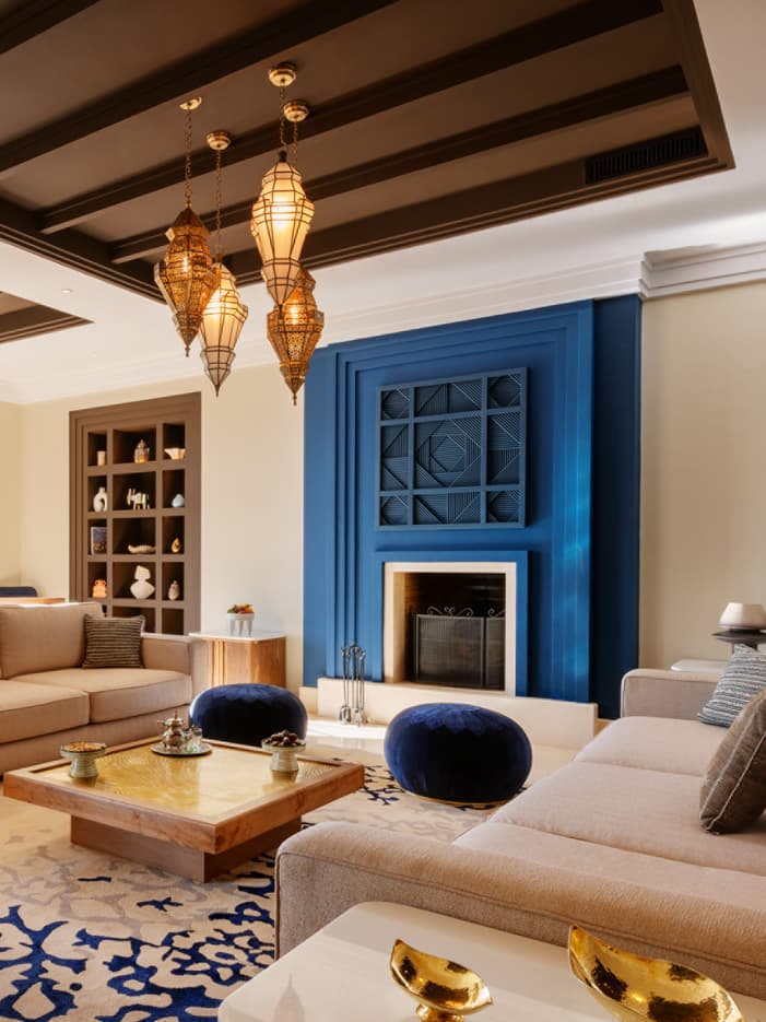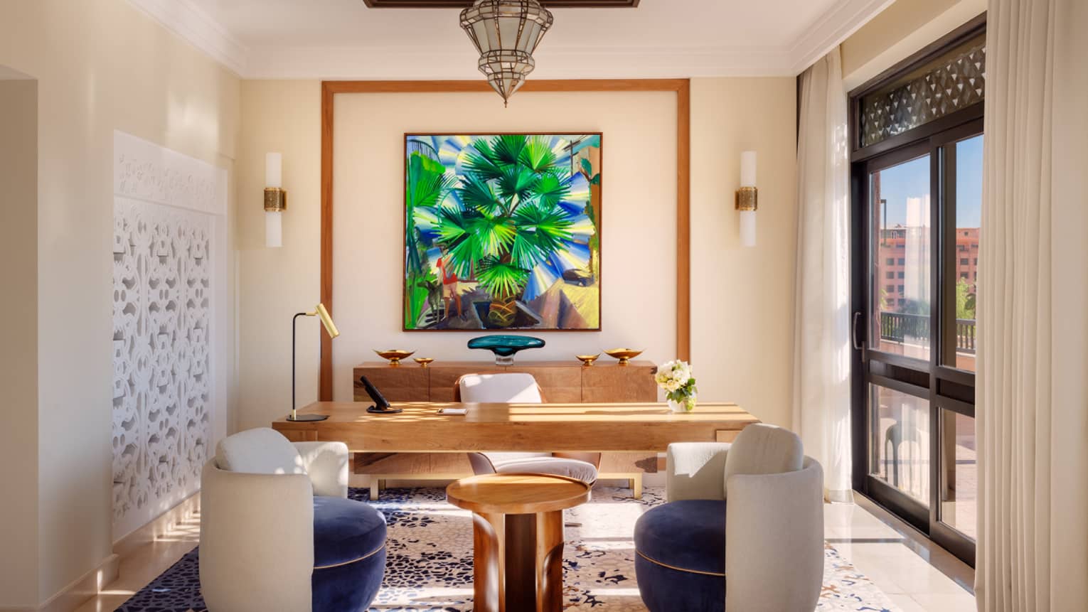 Estas suites de dos dormitorios ofrecen algunas de las mejores vistas desde el Resort. Observe las montañas del Atlas nevadas o los míticos Jardines de la Menara desde su terraza envolvente antes de entrar en la habitación para acurrucarse frente a la chimenea.