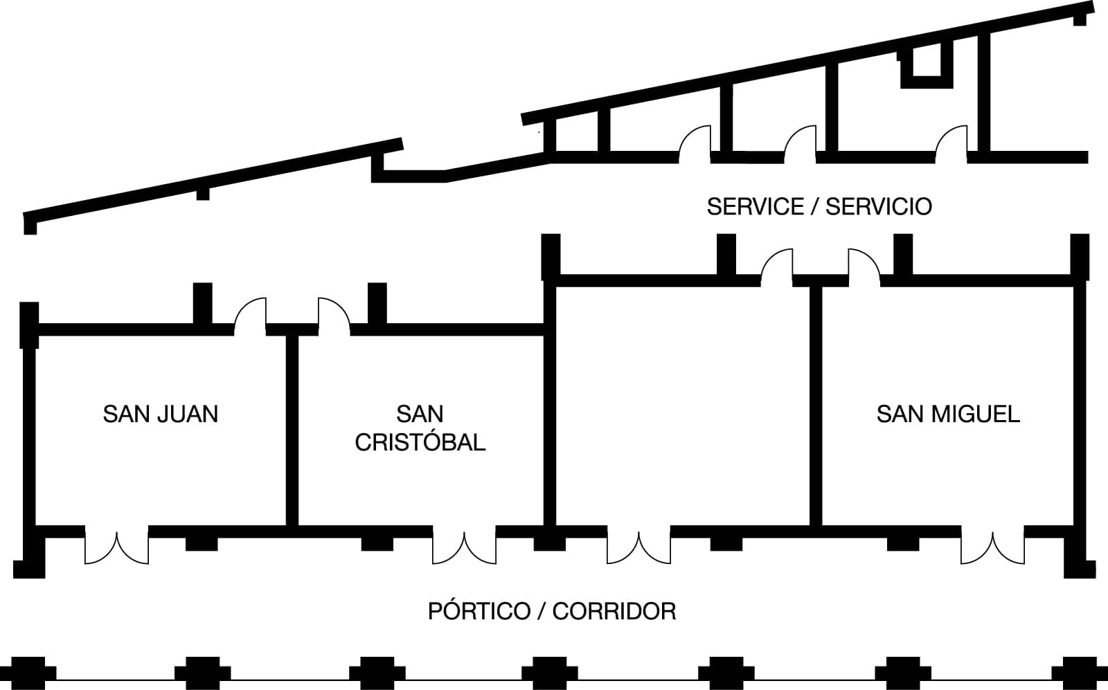 Ideal para reuniones exclusivas, la sala de reuniones de techos altos de San Cristobal se abre al patio central para descansos rápidos y refrescantes.