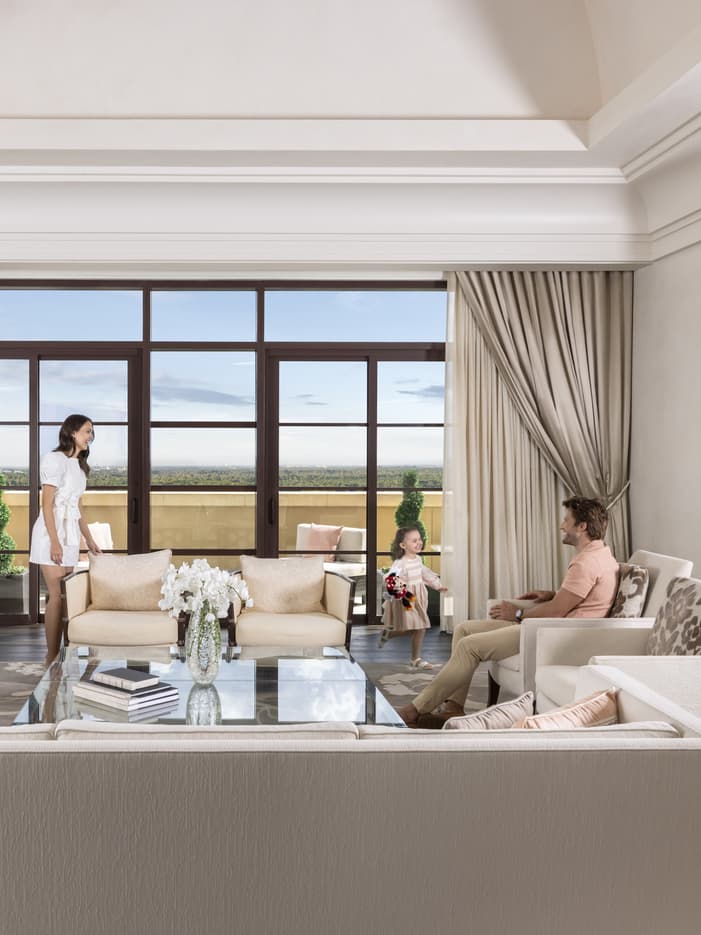 El Grand Getaway es un nuevo paquete que incluye cuatro noches de hospedaje en nuestra Grand Suite de tres habitaciones, ideal hasta para seis personas. Siéntase como en casa en la amplia sala de estar y espacioso comedor para ocho personas, en el bar con trascocina para facilitar el servicio en el lugar, y en la habitación principal, decorada con una pared de azulejos personalizada. El paquete Grand Getaway incluye: