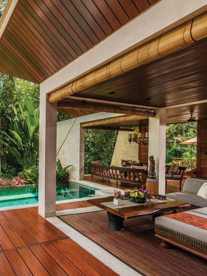 Nuestra villa de dos dormitorios con vistas al río incluye un espacio para meditar con el hipnótico fluir del agua, amplia sala de estar al aire libre y piscina privada que se conjugan para crear un verdadero santuario en nuestro resort en Ubud, Bali.