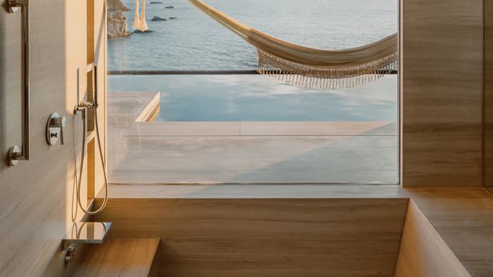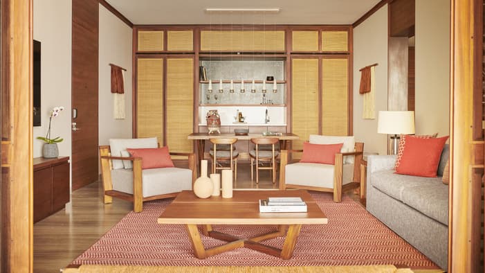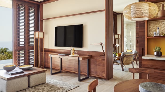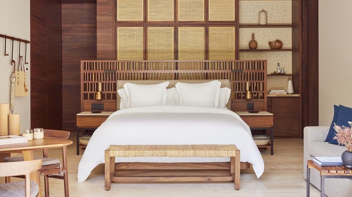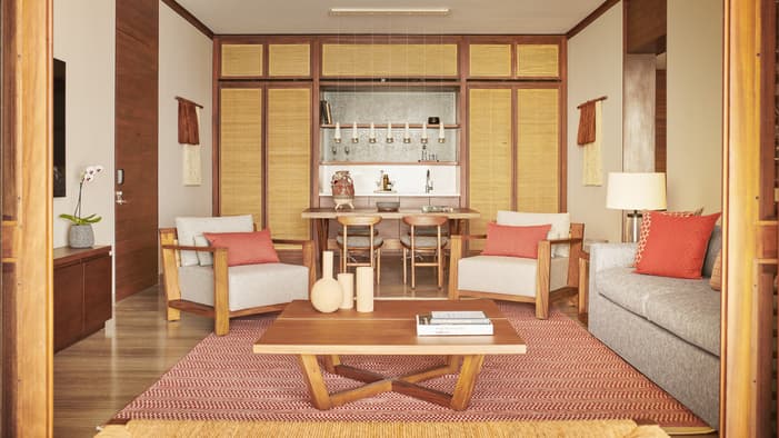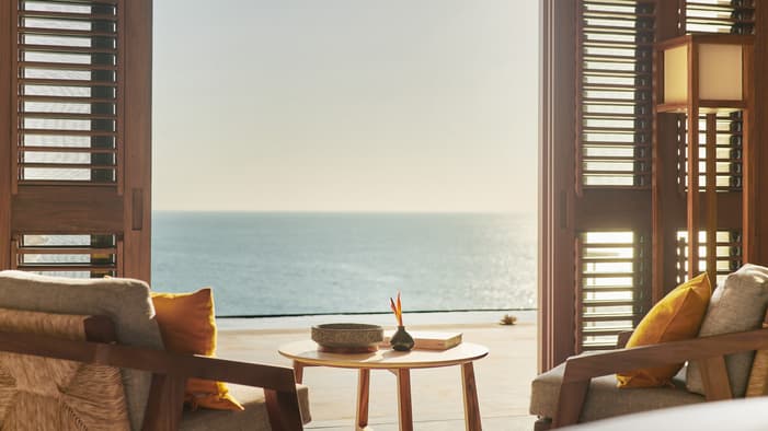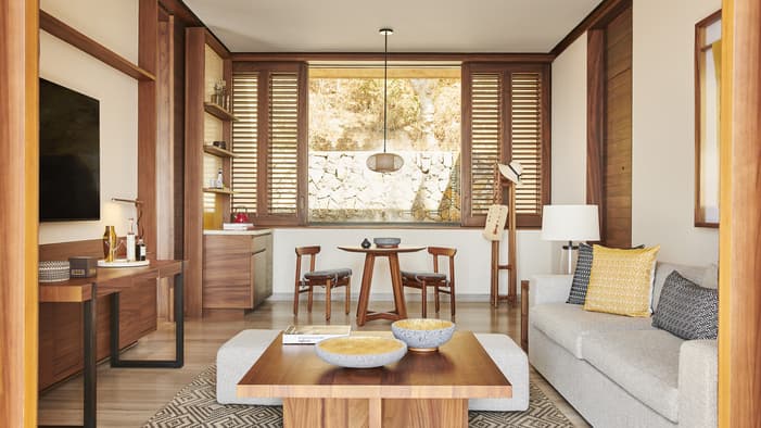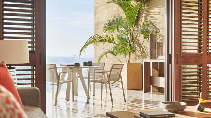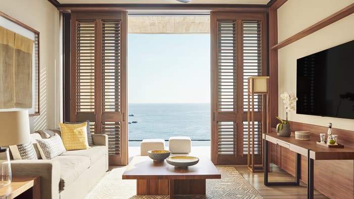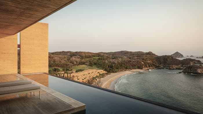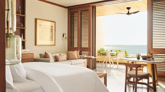 Estancia ideal para los amantes de la playa. Estas amplias suites cuentan con distintas áreas de estar, comedor y dormitorio. Disfrute de los días bajo el sol junto a su propia piscina infinita ubicada sobre la arena, con vistas a la playa y al océano.