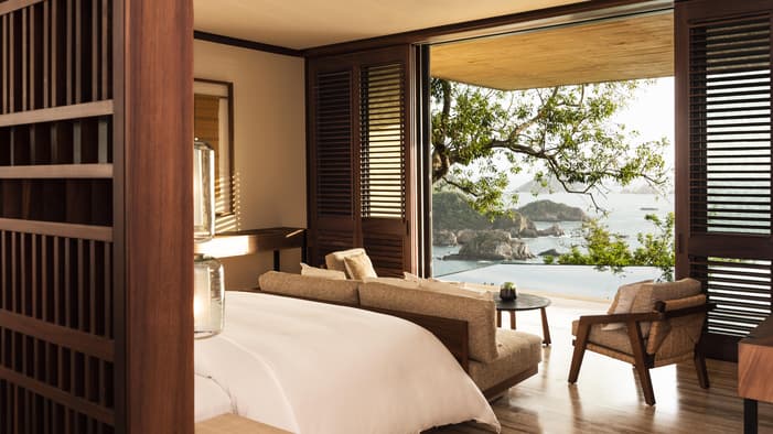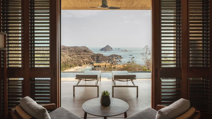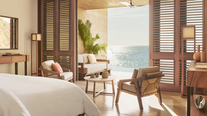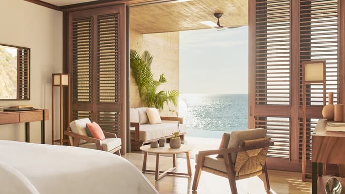 Aisladas sobre un acantilado, estas suites de un dormitorio ofrecen vistas elevadas del océano y de la reserva natural. Con su propia piscina infinita de 13 metros, una hamaca y una ducha al aire libre, es posible que nunca desee irse.