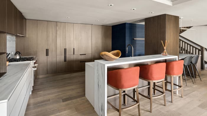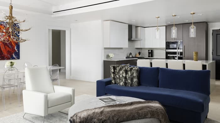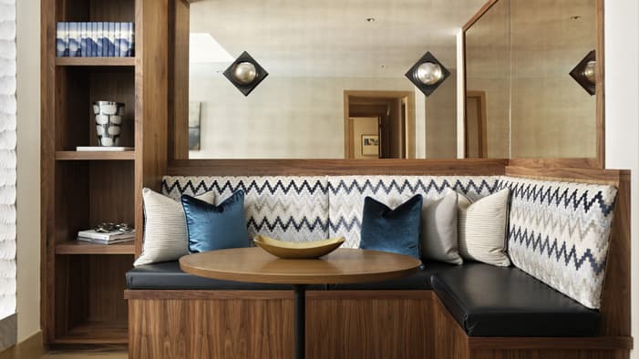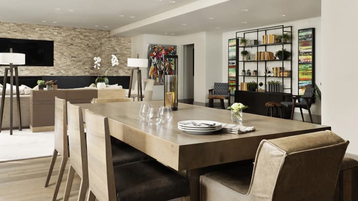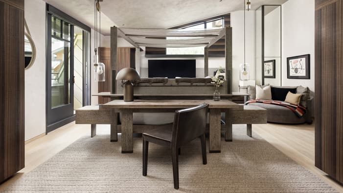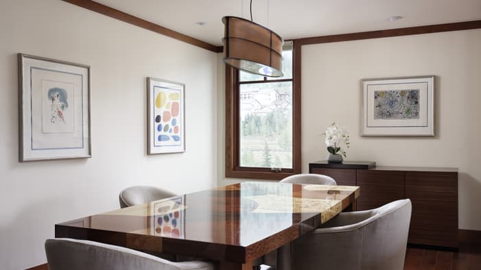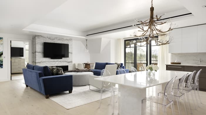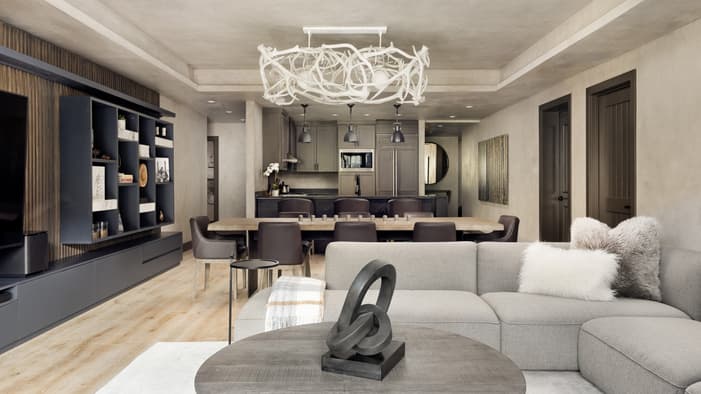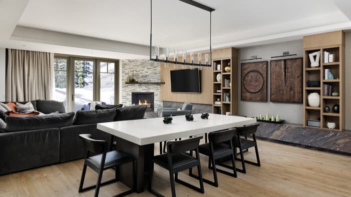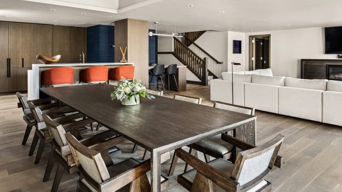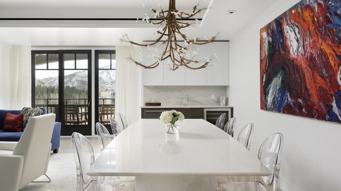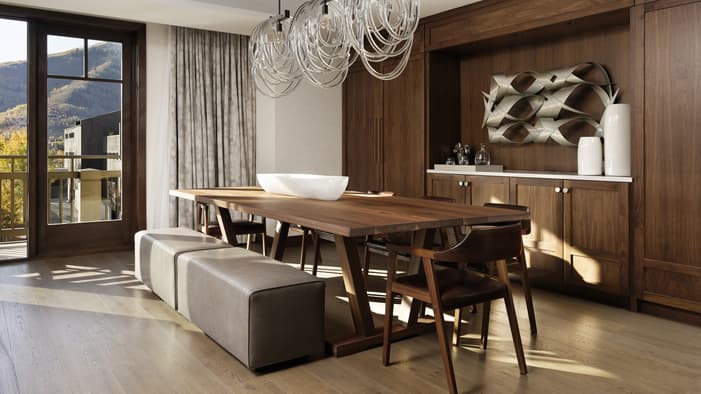 Los elementos de diseño del resort han transformado el hospedaje de montaña en la villa de Vail con un cambio de imagen elegante, fresco y chic. El estilo montañés se ha modernizado con la incorporación de líneas limpias y contemporáneas que, combinadas con texturas y colores orgánicos, complementan perfectamente el imponente paisaje montañoso de Vail.
