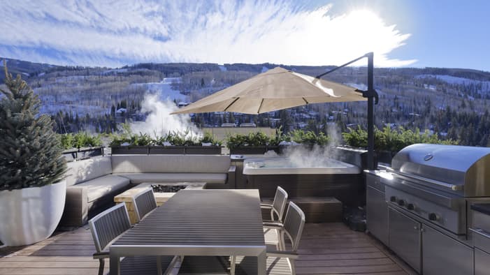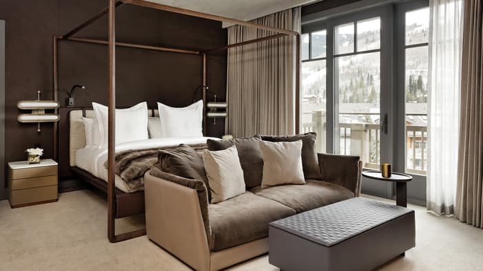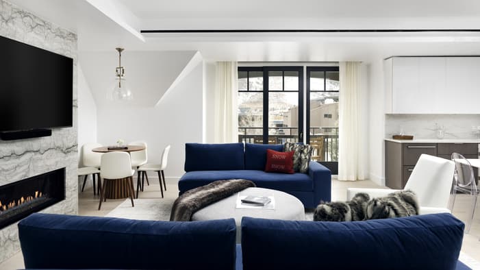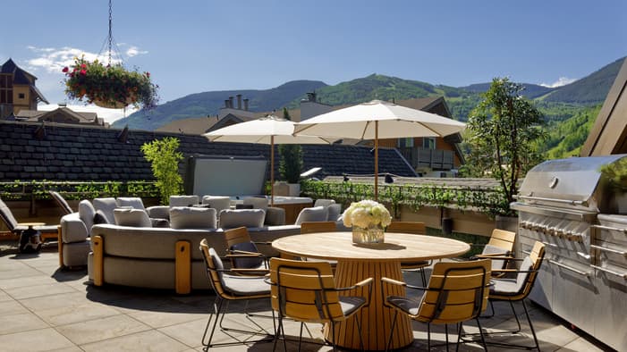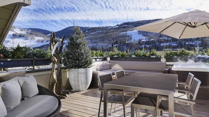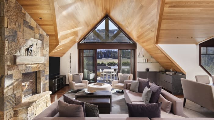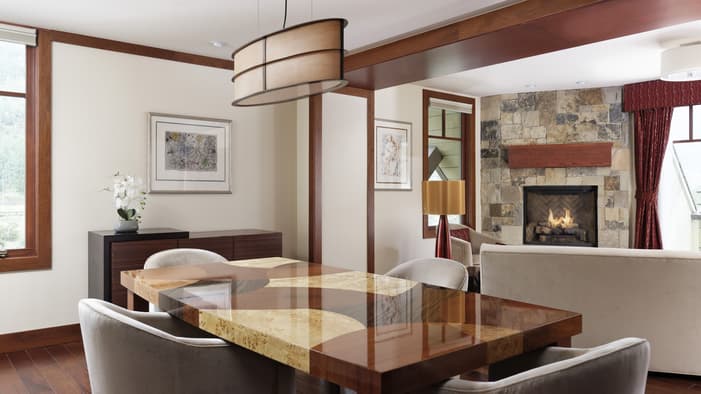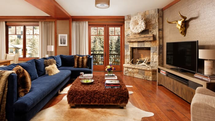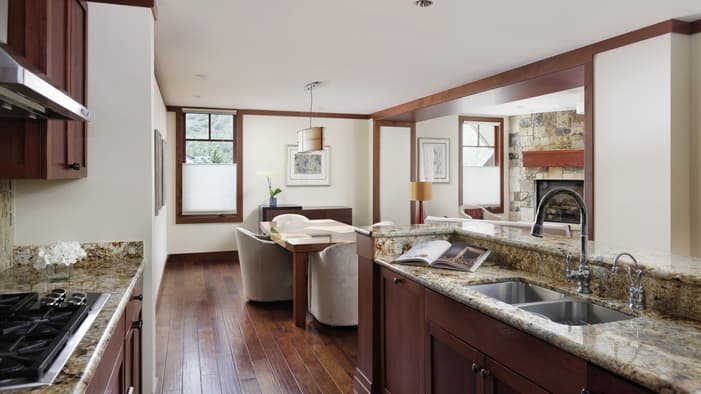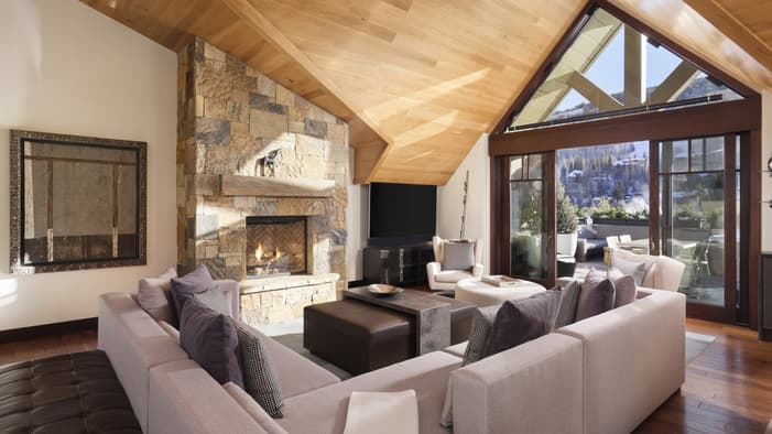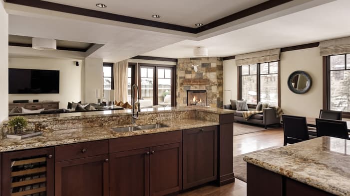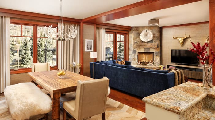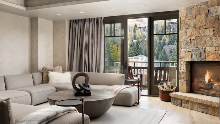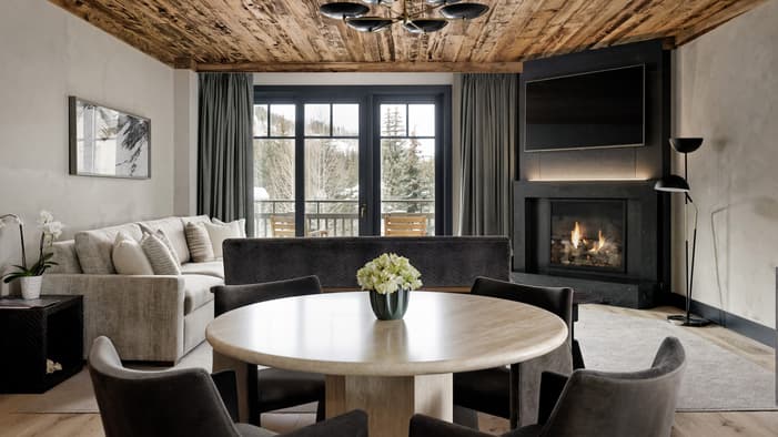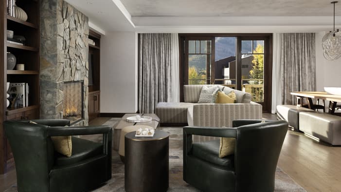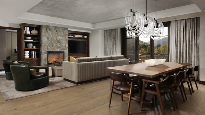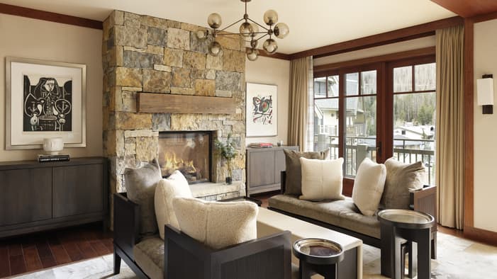 Ideal for extended stays, these luxury suites come with expansive living spaces, gas-burning stone fires and views of either Vail Mountain or the surrounding Gore Range.