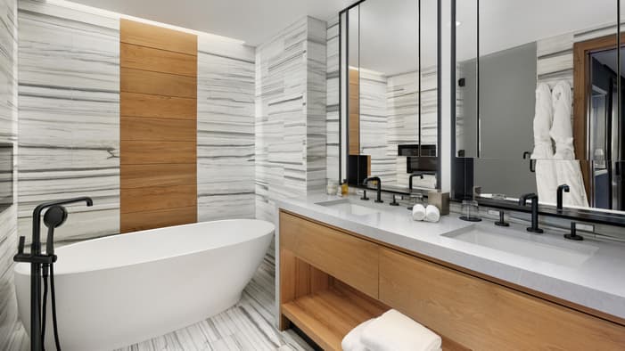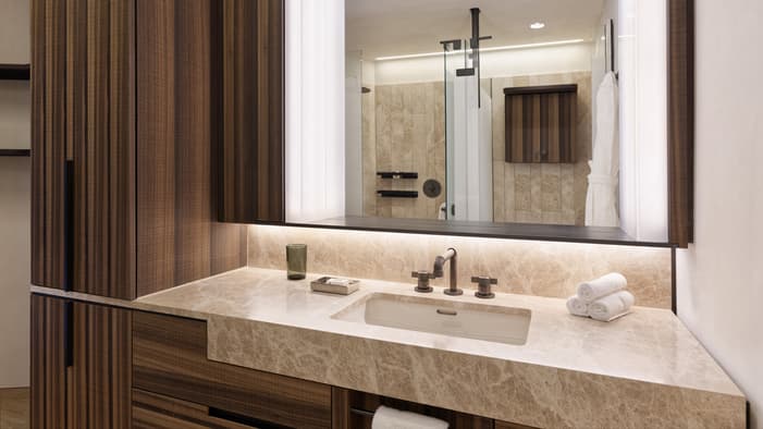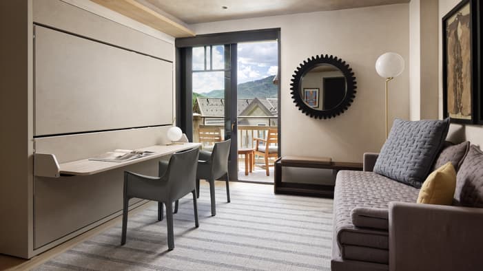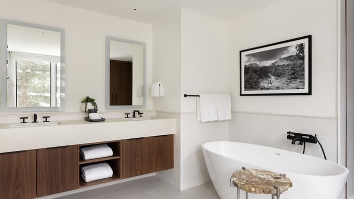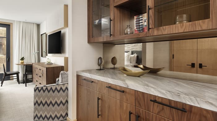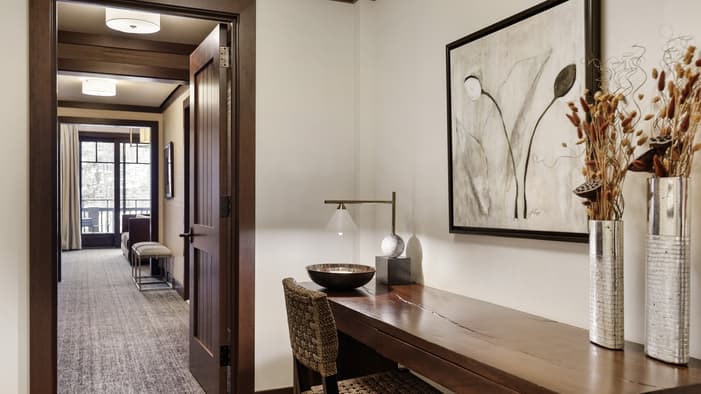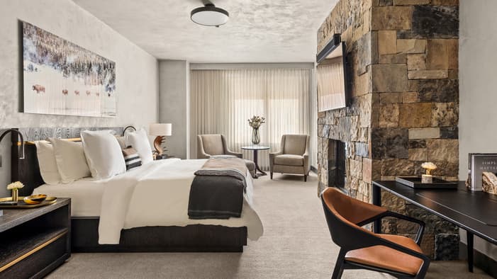 Utilizando una influencia similar inspirada en la montaña, cada una de nuestras suites recientemente renovadas ha sido diseñada con una paleta de colores que refleja la belleza natural de Vail durante todo el año, incorporando los tonos de cada estación con la cantidad perfecta de madera y piedra para equilibrar los matices suaves y vibrantes.