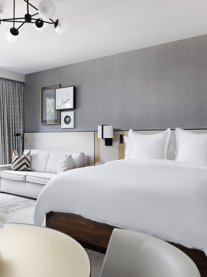 Experimente la combinación perfecta de comodidad y lujo en nuestras habitaciones Deluxe. Acurrúquese junto a la chimenea de piedra de gas, prepárese una bebida caliente en nuestra barra de café independiente y disfrute de las magníficas vistas al patio. Hay muchas maneras de relajarse al hospedarse en nuestro icónico destino de montaña. La mayoría de las habitaciones cuentan con balcón o terraza privados, con mobiliario de mesa y sillas.