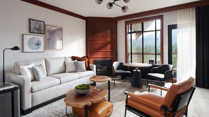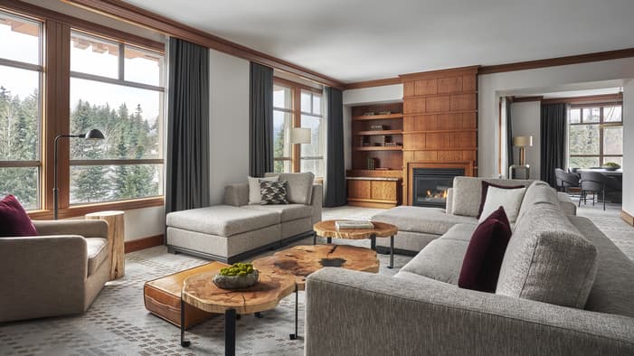 Nuestro hotel en Whistler ofrece ambientes interiores sofisticados con acabados en madera en las habitaciones más grandes, además de chimenea de gas, sala de estar independiente y vistas privilegiadas a las montañas nevadas o al patio y el bosque.