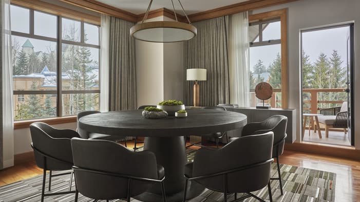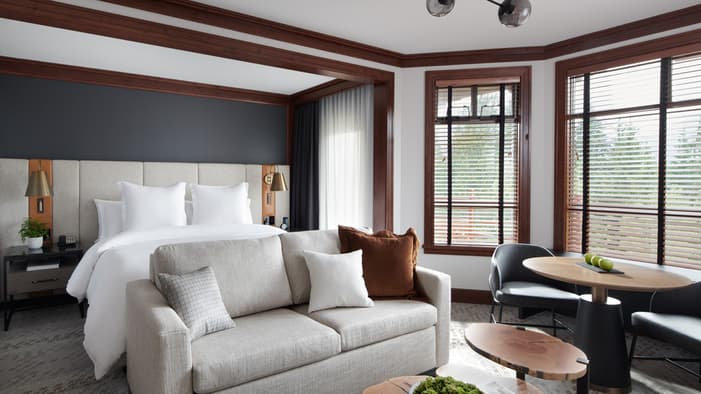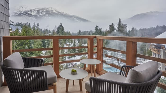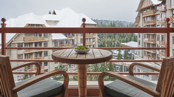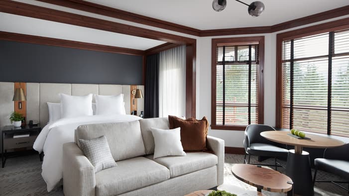 Nuestras habitaciones en Whistler se encuentran entre las más espaciosas de la localidad y poseen elegantes interiores con vistas a las montañas nevadas o a patios apacibles. También puede elevar su experiencia de hospedaje en nuestras suites en Whistler, que disponen de sala de estar independiente y dormitorios con baño privado para una comodidad inigualable.