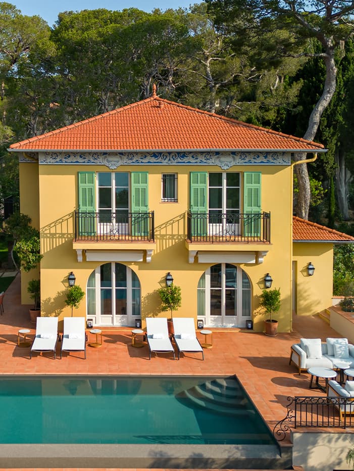 Située à quelques pas de l’hôtel, la Villa Clair Soleil est un lieu de résidence intime offrant deux chambres à coucher et qui bénéficie d'un emplacement paisible ainsi que d’une vue magnifique sur la mer. Construite au début du XXe siècle, la villa présente des murs blanchis à la chaux et des pierres apparentes. La décoration intérieure, qui associe fraîcheur et pureté, présente de douces tonalités de vert rappelant le paysage naturel environnant ainsi que des nuances d’orange et de terracotta au charme typiquement provençal. La villa dispose d’une vaste terrasse et d’une piscine, ainsi que d’une salle de sport privée avec accès direct au jardin.