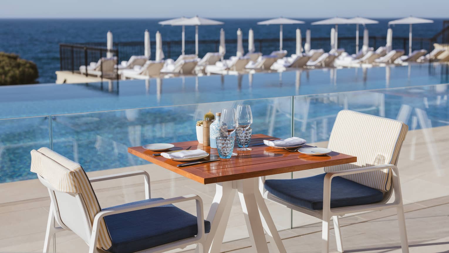 Déjeunez dans notre restaurant en plein air et détendez-vous tout en savourant une salade provençale, un poisson grillé accompagné d’un rosé local et les desserts de notre Chef Pâtissier, avec pour toile de fond la mer et les eaux cristallines de notre piscine à débordement.