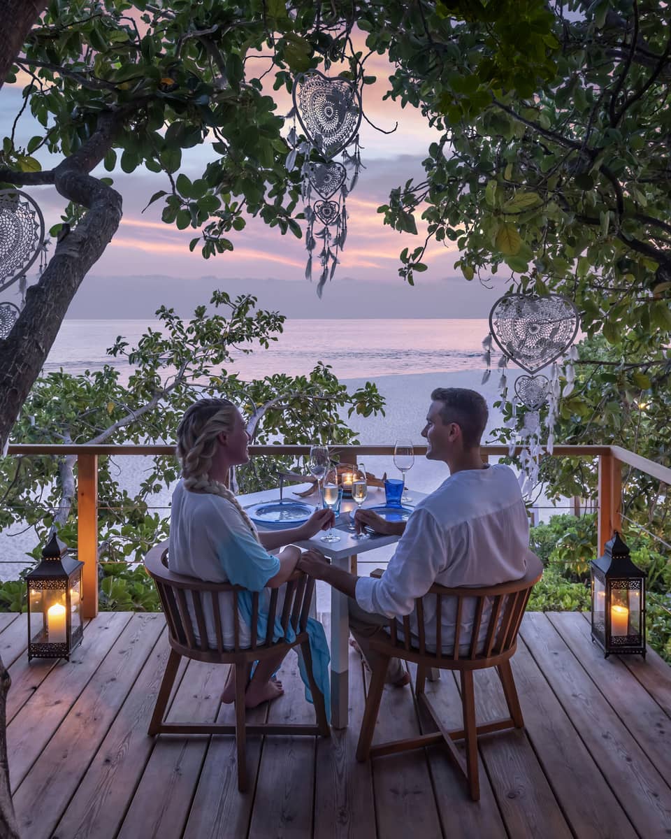Après une petite traversée depuis la plage du Fuego, vous voilà installés sur une plate-forme flottante au beau milieu du lagon aux eaux étincelantes pour un dîner aux chandelles romantique.2 / 5
