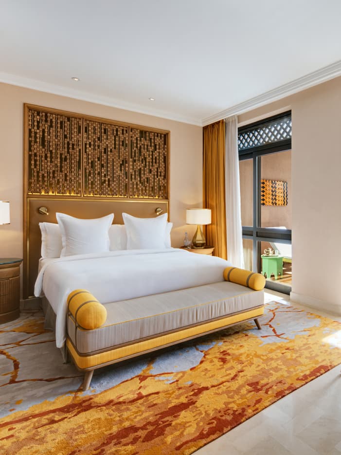 Observez le spectacle d'un coucher de soleil et ses reflets scintillants sur l'eau des piscines depuis le confort de votre balcon privé.