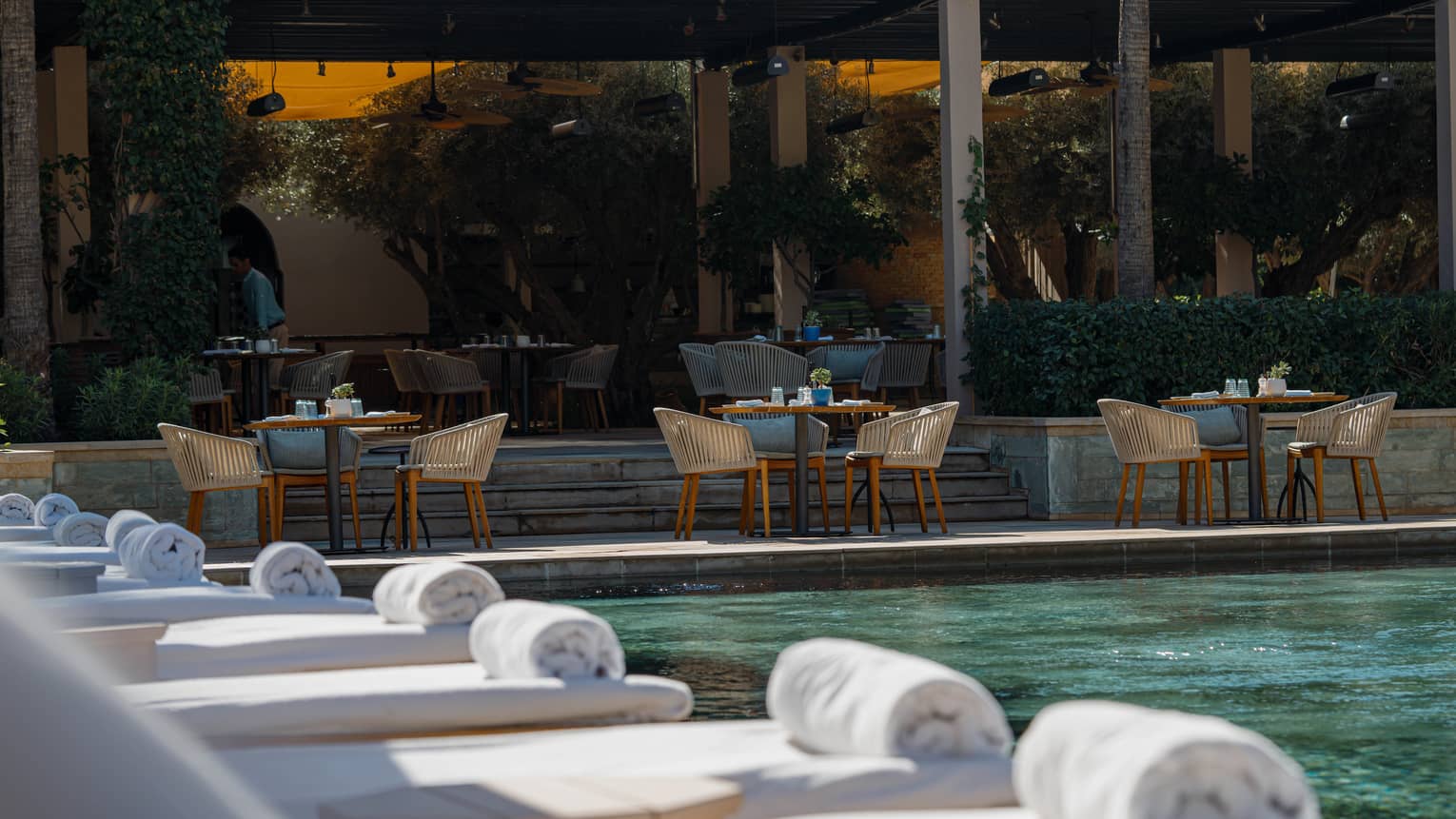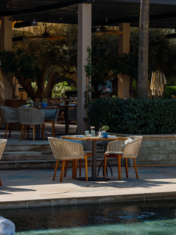 Azzera, notre restaurant et bar installé à l’ombre des palmiers et oliviers avec vue sur la piscine adulte, propose une cuisine fraîche aux accents méditerranéens et des cocktails signature, à déguster au bar central ou confortablement installé sur votre transat. Un menu à savourer toute la journée.