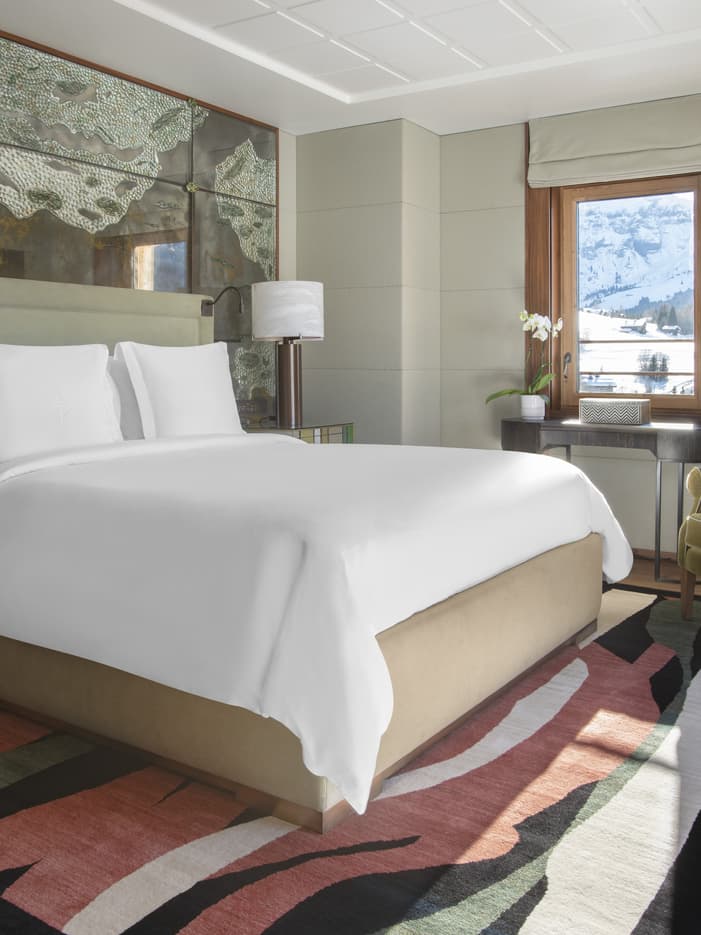 Dans cette élégante suite décorée à la façon d'un luxueux chalet, des essences de bois sombre apportent de la chaleur et mettent en valeur le mobilier contemporain. Profitez du vaste séjour et du balcon qui entoure la suite, ou bien plongez-vous dans un bain chaud dans la grande baignoire de la salle de bain après une journée en plein air.