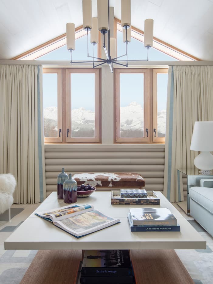 L'architecture de tradition alpine et le mobilier contemporain caractérisent cette suite lumineuse et spacieuse, qui offre des vues panoramiques sur la vallée depuis chaque fenêtre.