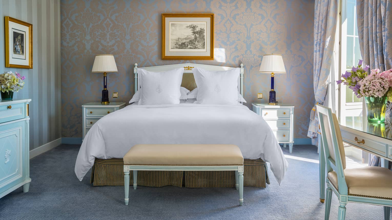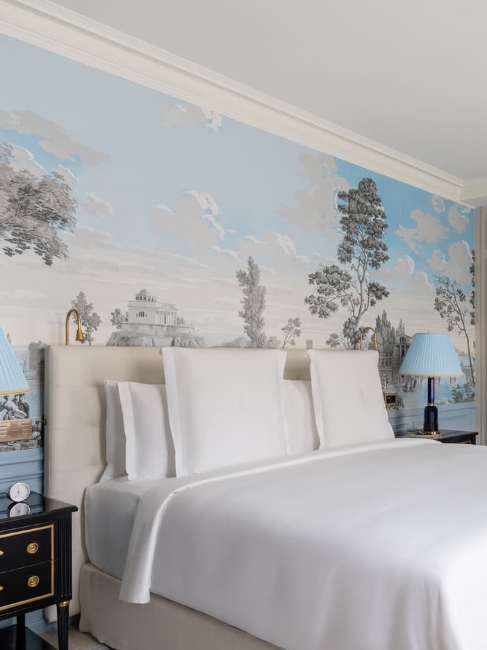 Comfortable and bright, these rooms feature high ceilings and large windows, with partial views of Lake Geneva, the city or the Hotel's garden. Bathed in soothing pastel hues of light blue and green, inspired by the serene waters of Lake Geneva, these rooms effortlessly evoke a sense of tranquillity. Embodying the Hotel’s rich history and versatility, each room offers its own unique allure, whether through expansive layouts, captivating views, classic or contemporary design.