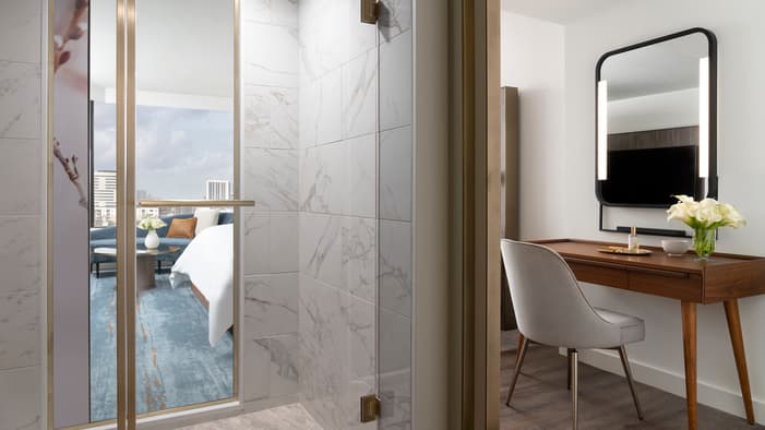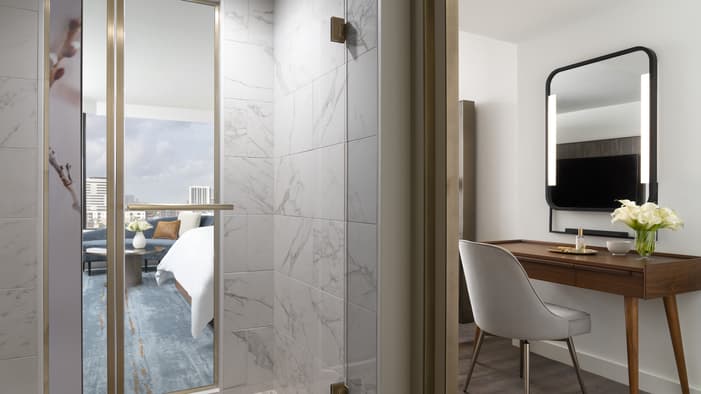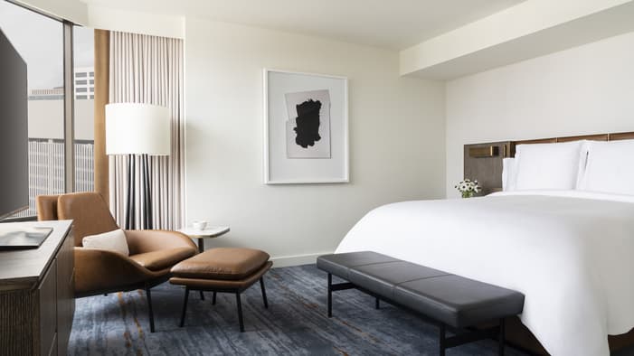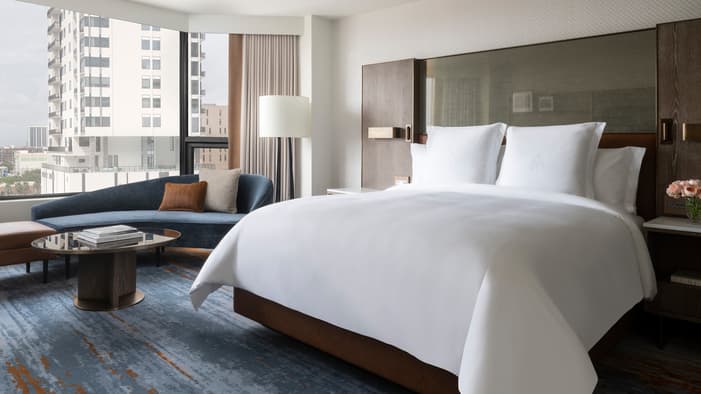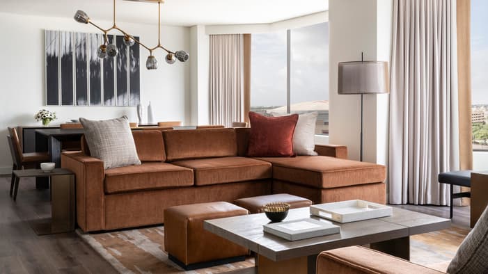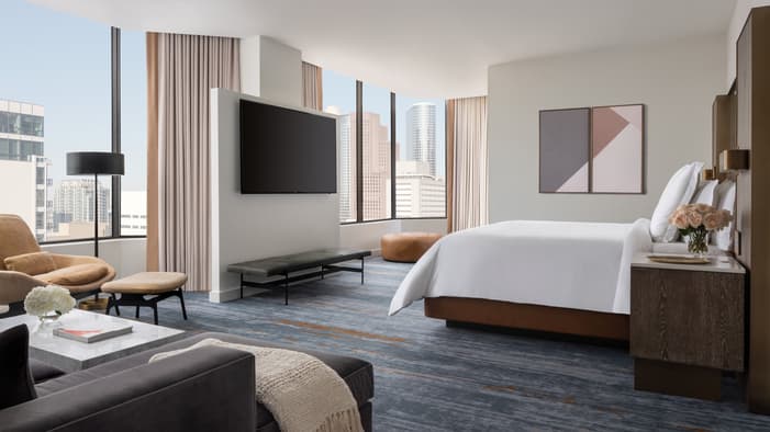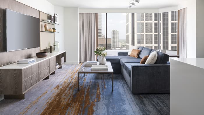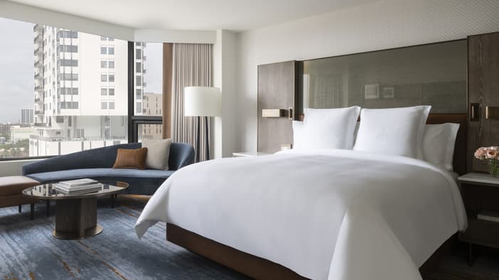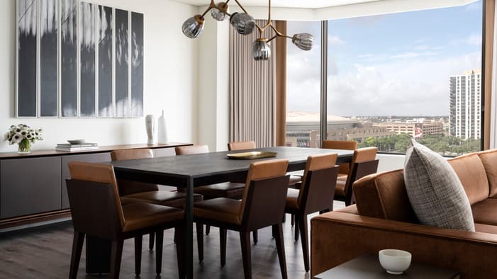 Set in the heart of downtown, our guest rooms and luxury suites in Houston offer sophistication and comfort, perfect for couples, families and individuals on business. Our Texas-inspired hotel rooms offer the utmost comfort and privacy, while our specialty suites and residential suites boast expansive living space, panoramic views and an array of amenities. At Four Seasons, experience unmatched elegance and tranquility during your stay in downtown Houston.